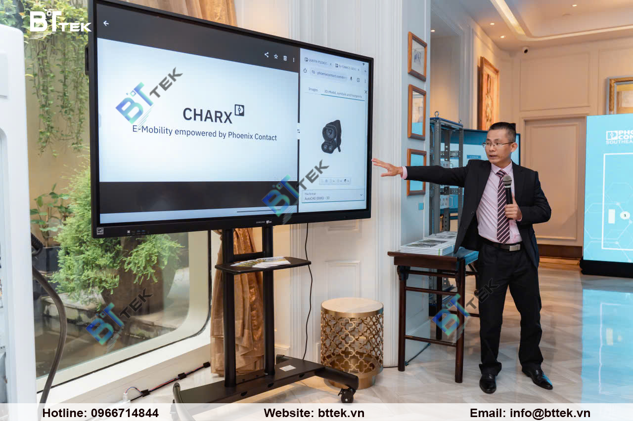 Thực tế, tại một triển lãm mới đây, BTTEK đã triển khai màn hình tương tác 75 inch cho gian hàng Phoenix Contact. Thiết bị giúp doanh nghiệp này giới thiệu sản phẩm và giải pháp công nghệ một cách trực quan, thu hút đông đảo khách tham dự, đồng thời tạo điều kiện để khách hàng trải nghiệm và tìm hiểu thông tin một cách sinh động, dễ tiếp cận.