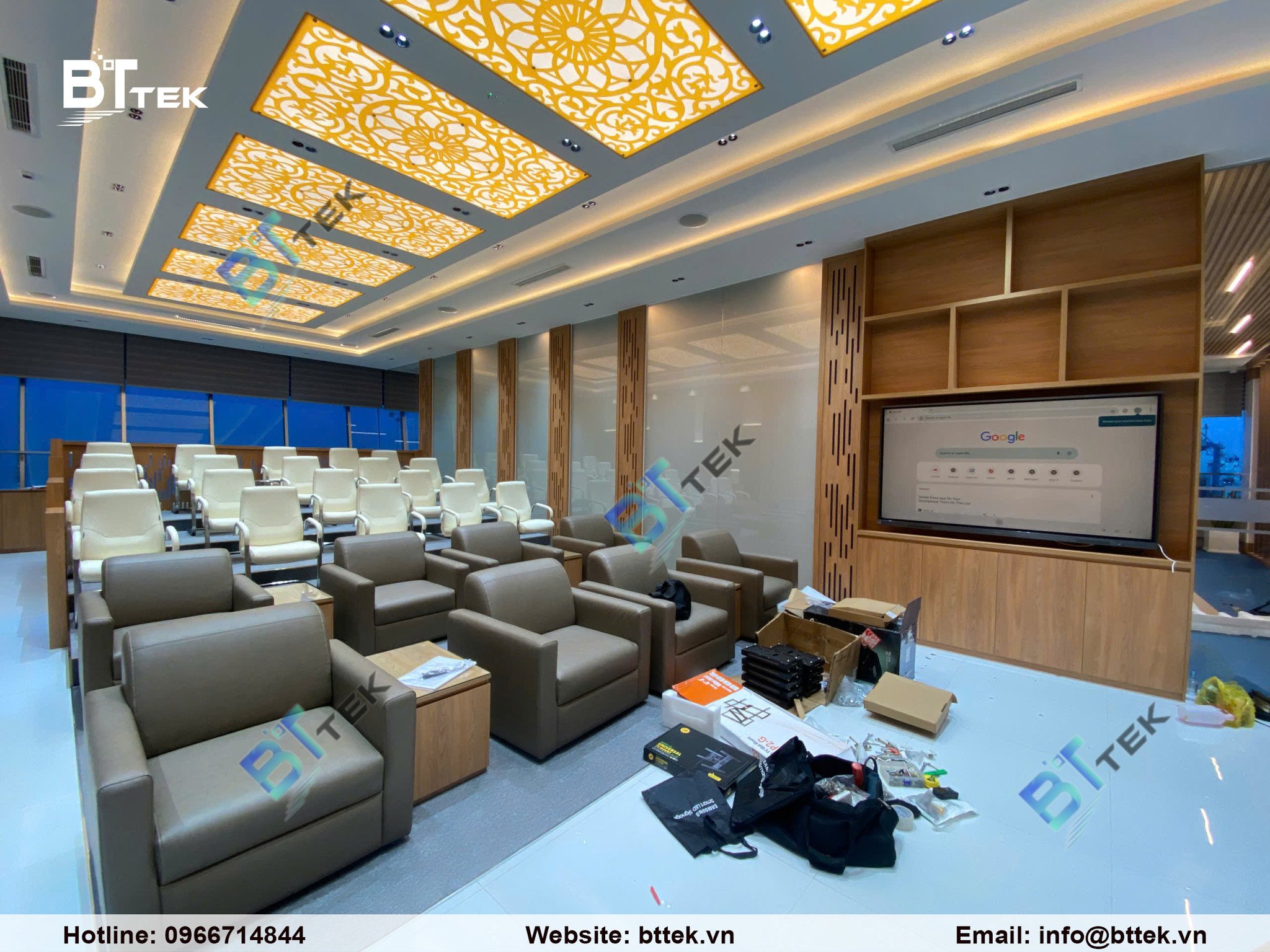 - Khảo sát & tư vấn thiết kế: Xác định vị trí, nhu cầu, luồng tương tác trong phòng Control Room và phòng tiếp lãnh đạo.