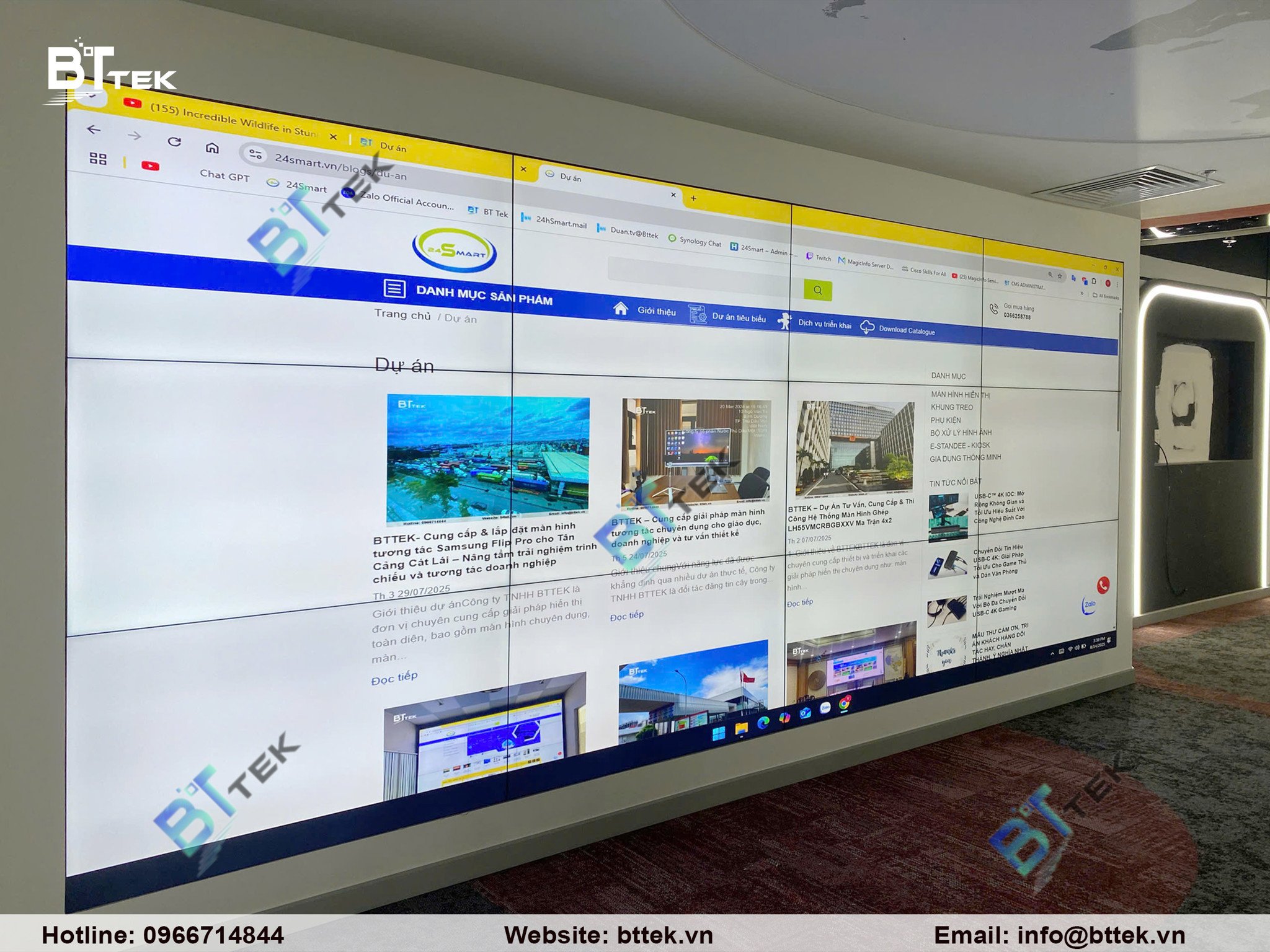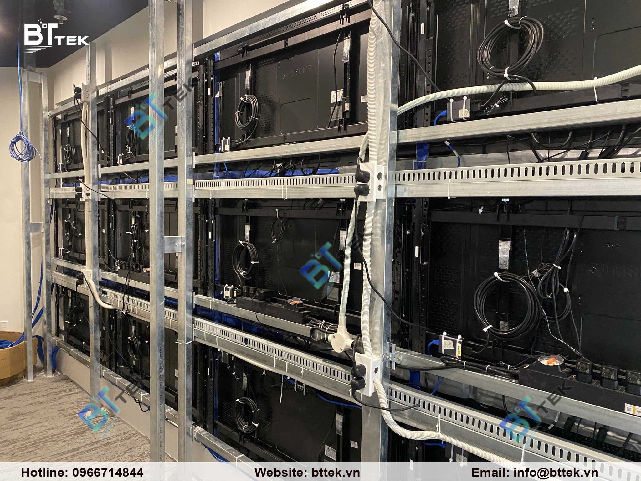 - Quy mô hệ thống: 4x3 (tổng cộng 12 tấm), sử dụng màn hình Samsung LH55VHCEBGBXXV với viền siêu mỏng 1.74mm