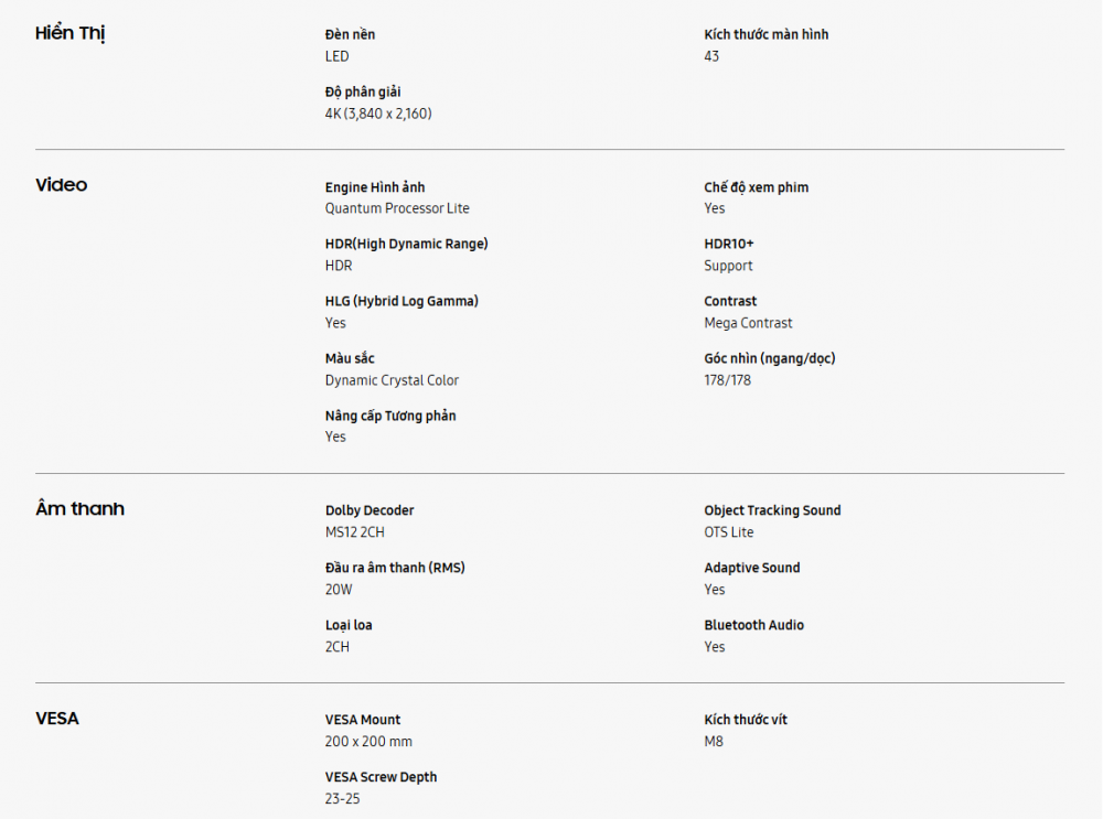 - Bộ xử lý Crystal 4K siêu mạnh mẽ