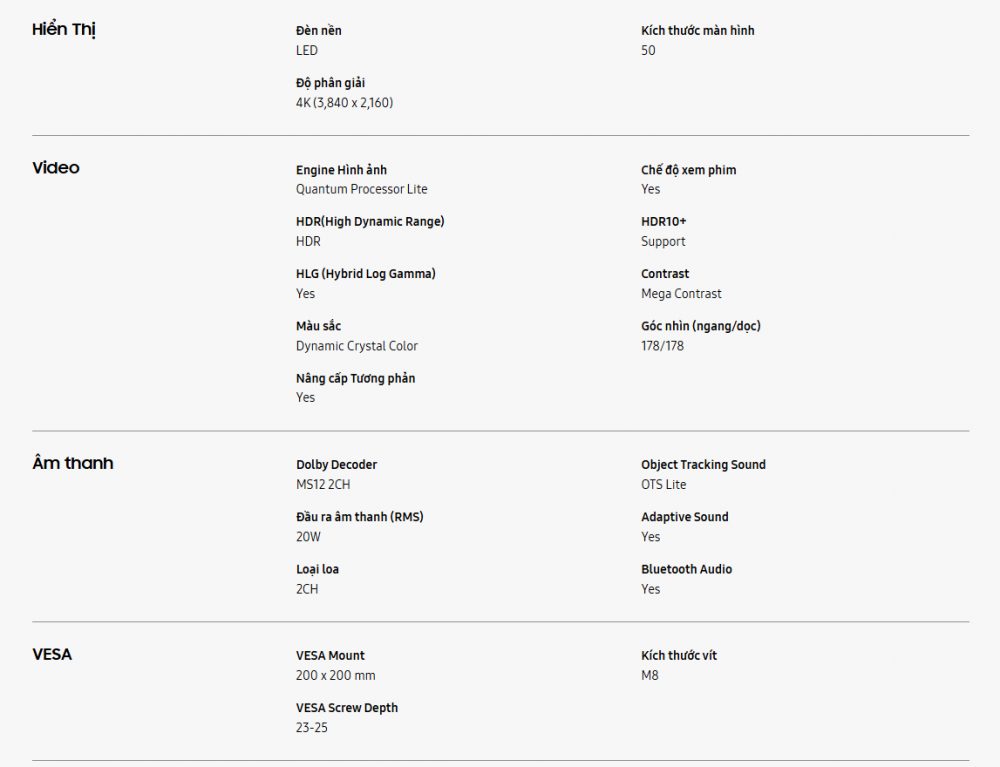 - Bộ xử lý Crystal 4K siêu mạnh mẽ