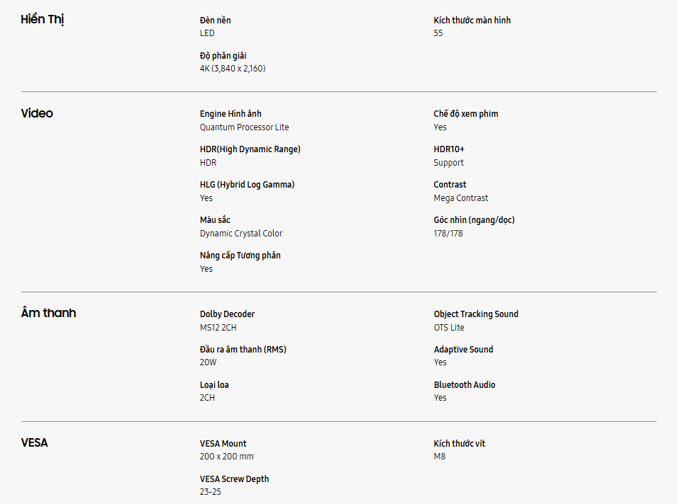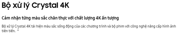 - Bộ xử lý Crystal 4K siêu mạnh mẽ