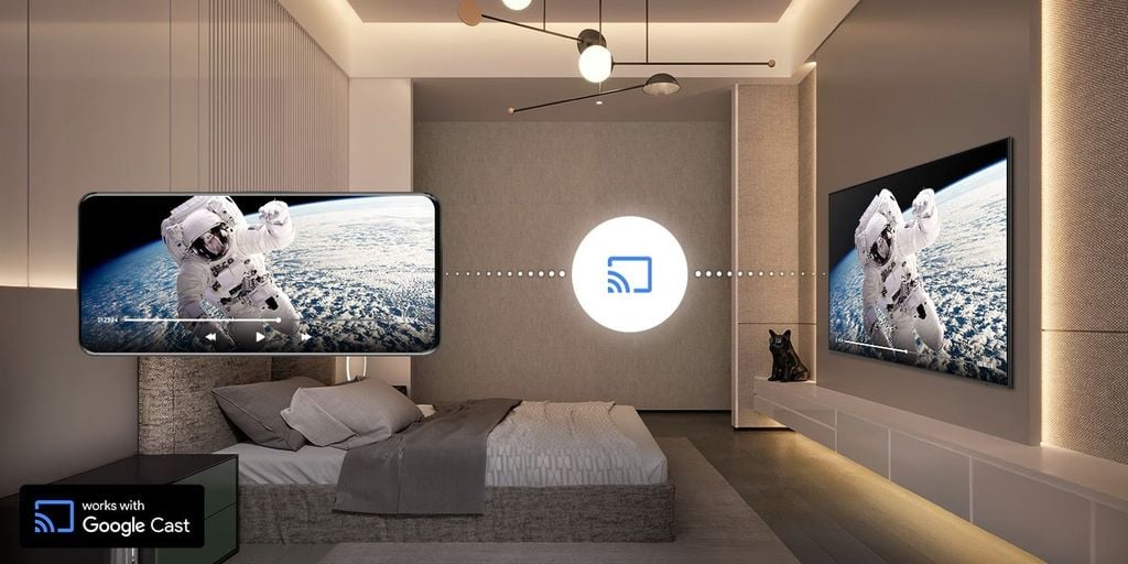 Với Google Cast™, khách có thể dễ dàng phát nội dung yêu thích từ thiết bị Android™ và iOS cá nhân lên TV, mà không cần đến thiết bị cắm ngoài hay phải đăng nhập. Quá trình kết nối nhanh chóng, đơn giản, chỉ cần quét mã QR để ghép nối ngay lập tức.
