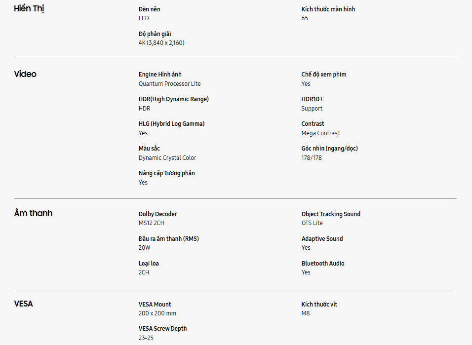 - Bộ xử lý Crystal 4K siêu mạnh mẽ