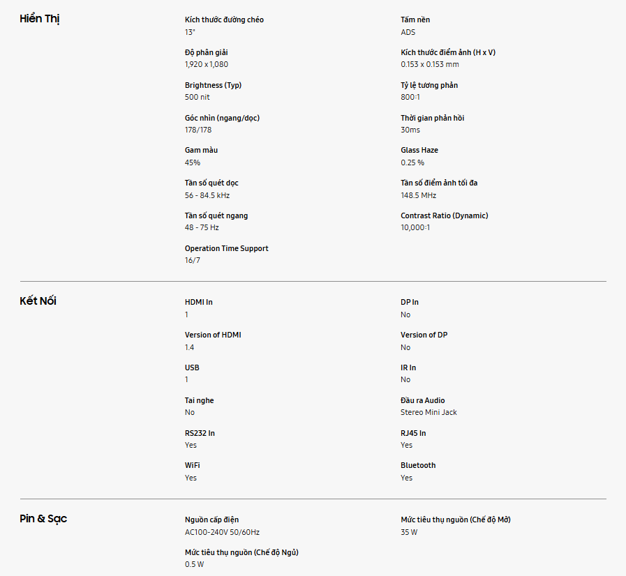 Màn hình chuyên dụng LFD Samsung 13inch LH13QBCEBGBXXV