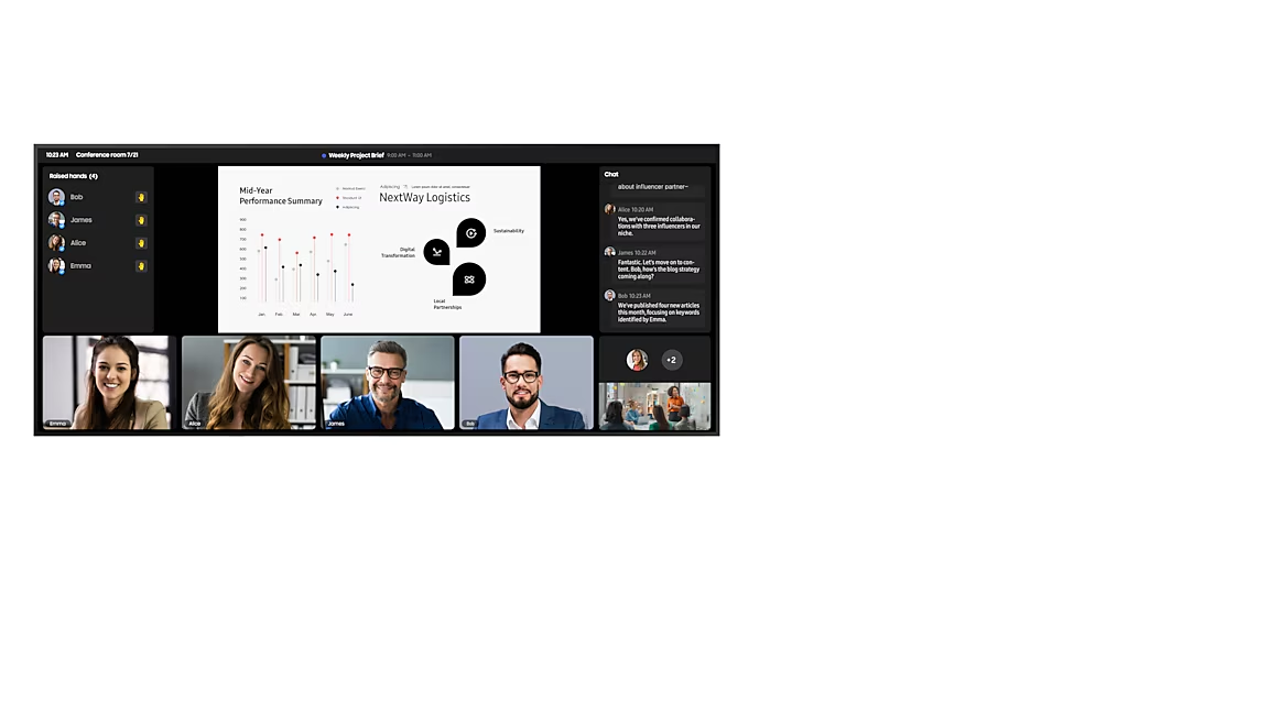 Trải nghiệm tăng cường hợp tác nhờ độ phân giải 5K siêu rõ nét, giúp trình chiếu hình ảnh căng nét cùng các chi tiết tuyệt mỹ. Góc nhìn rộng, đảm bảo hình ảnh rõ ràng, sống động luôn trong tầm nhìn của những người tham gia cuộc họp, vì thế không bỏ lỡ bất kỳ chi tiết nào, dù ngồi ở đâu.