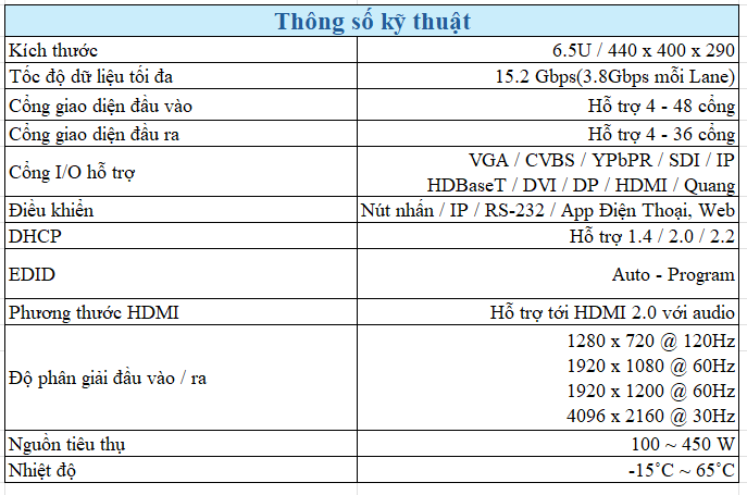 - Chuyển đổi liền mạch – EDID tự động – 5ms