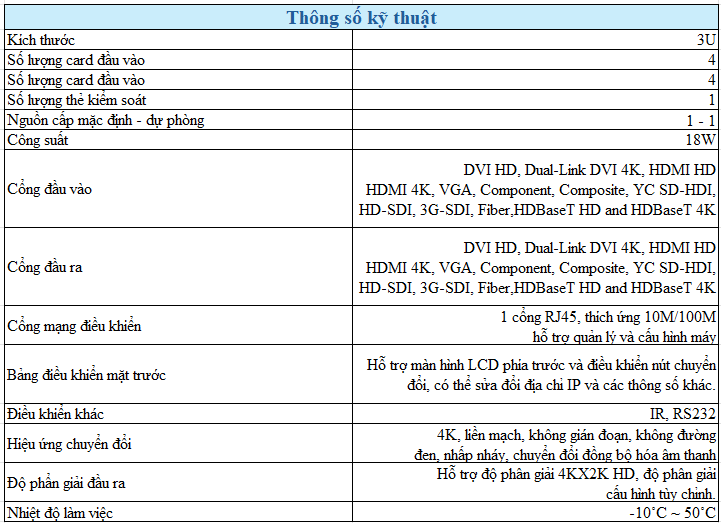 - Độ phân giải tối đa lên tới 4Kx2K @ 30Hz