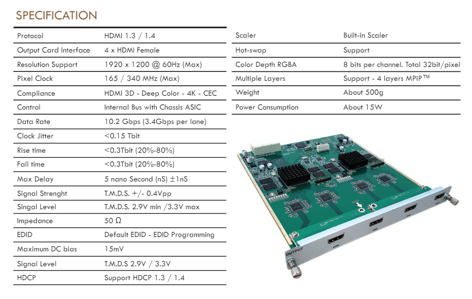 Card đầu ra HDMI cho dòng ACW4 Bộ Điều Khiển Màn Hình Ghép