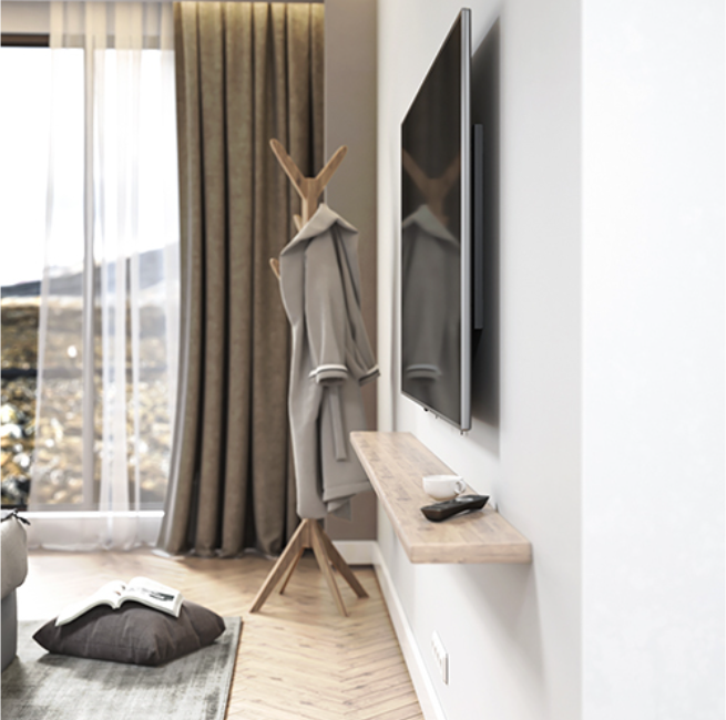 - Khóa lò xo tự động với dây tháo nhanh: cho phép tháo TV nhanh chóng và dễ dàng
