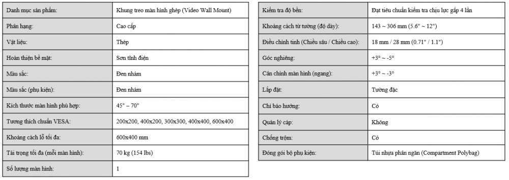 Khung Treo Màn Hình Ghép Chuyên Dụng BT26-VW