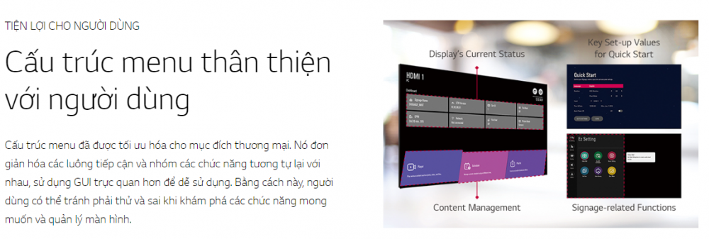 - Giao diện: HDMI/ DP/ DVI-D/ USB/ RS232C/ RJ45/ Âm thanh/ IR