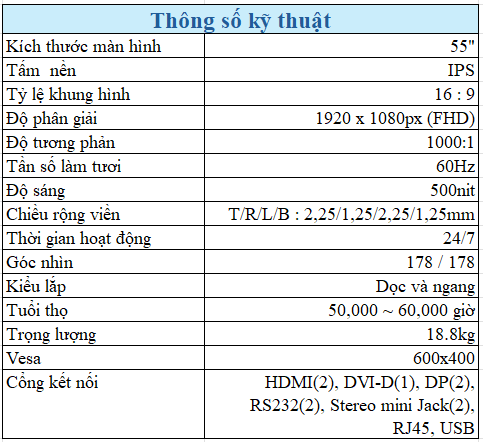 Màn hình ghép viền mỏng FHD 55" 500 nits