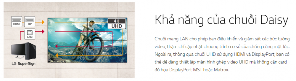 - Giao diện: HDMI/ DP/ DVI-D/ USB/ RS232C/ RJ45/ Âm thanh/ IR