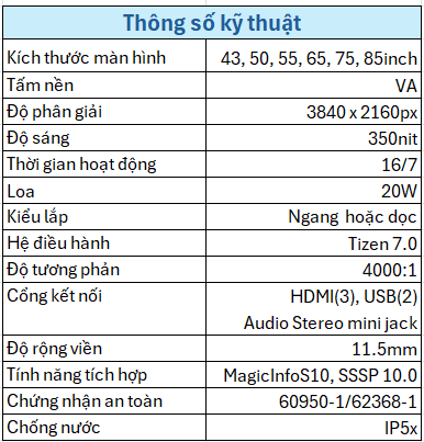 Màn hình chuyên dụng LFD Samsung QBC Series