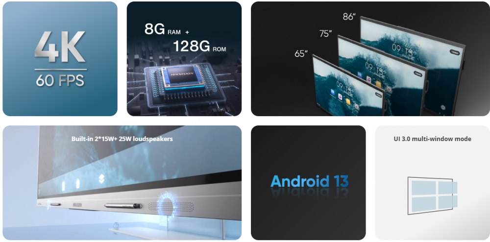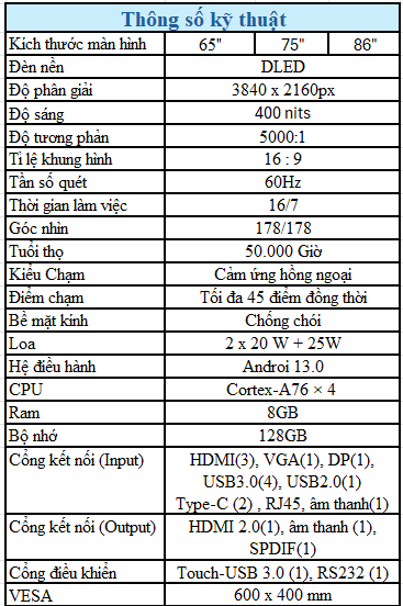 - Các kích thước màn hình: 65", 75", 86".