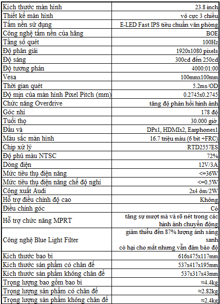 - Tần số quét màn hình lên đến 100Hz