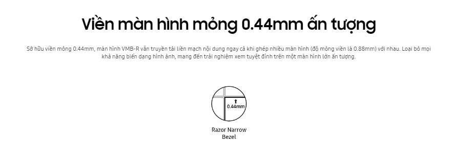 - Thiết kế viền mỏng chỉ 0,44mm mang đến trải nghiệm hình ảnh sống động, liền mạch.