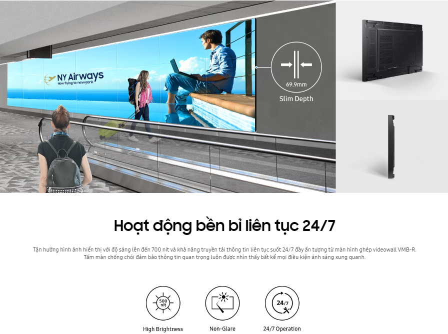 - Độ sáng 500 nit và bảng điều khiển không chói mang lại khả năng hiển thị cao 24/7