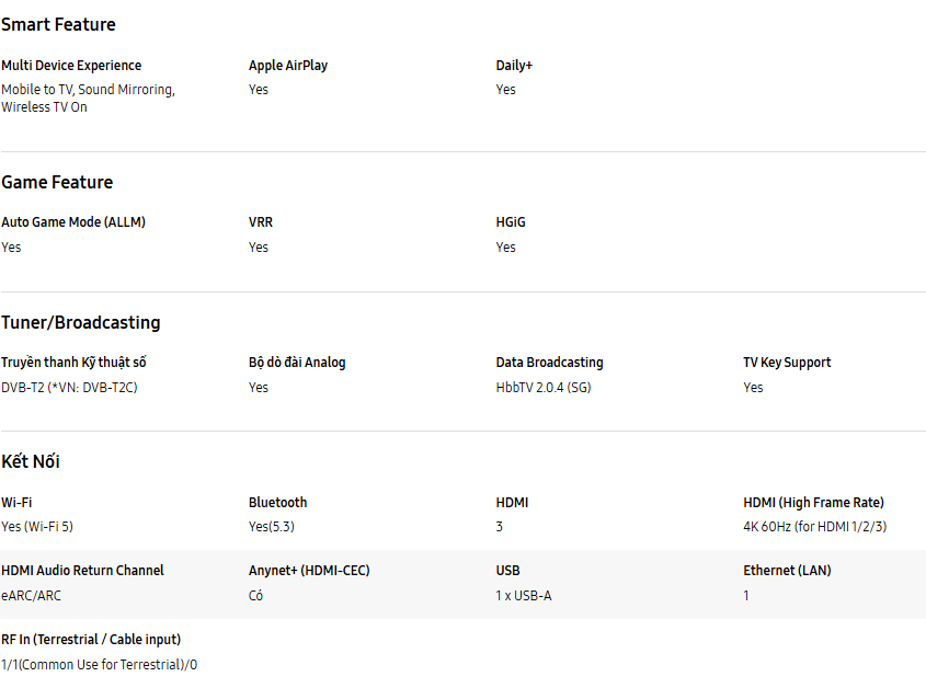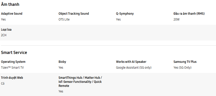 *Hệ điều hành Tizen sẽ được hỗ trợ nâng cấp lên đến 7 năm kể từ năm 2025, đối với các sản phẩm ra mắt trong năm 2025.