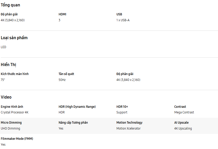 Smart Tivi 75inch UHD U8500F UA75U8500FKXXV (2025)