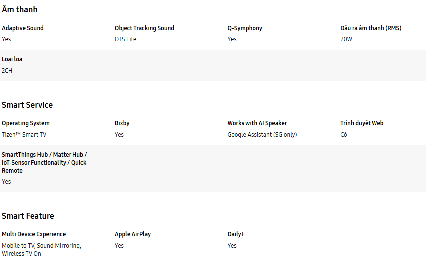 *Hệ điều hành Tizen sẽ được hỗ trợ nâng cấp lên đến 7 năm kể từ năm 2025, đối với các sản phẩm ra mắt trong năm 2025.